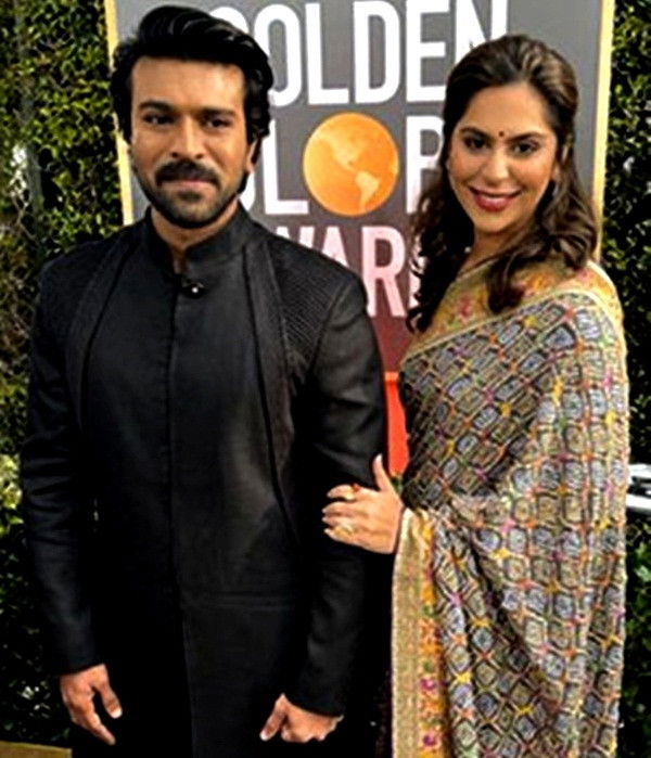 Superstar Ram Charan's wife Upasana Kamineni posted a series of pictures with her husband from Golden Globe Awards 2023 on social media, after 'Naatu Naatu', a song from his 'RRR' won the award for Best Original Song.