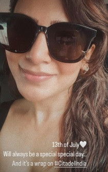 Samantha on her Instagram stories posted selfie as she smiled at the camera and captioned it: "13th of July will always be a special special day. And it's a wrap on #CitadelIndia."
