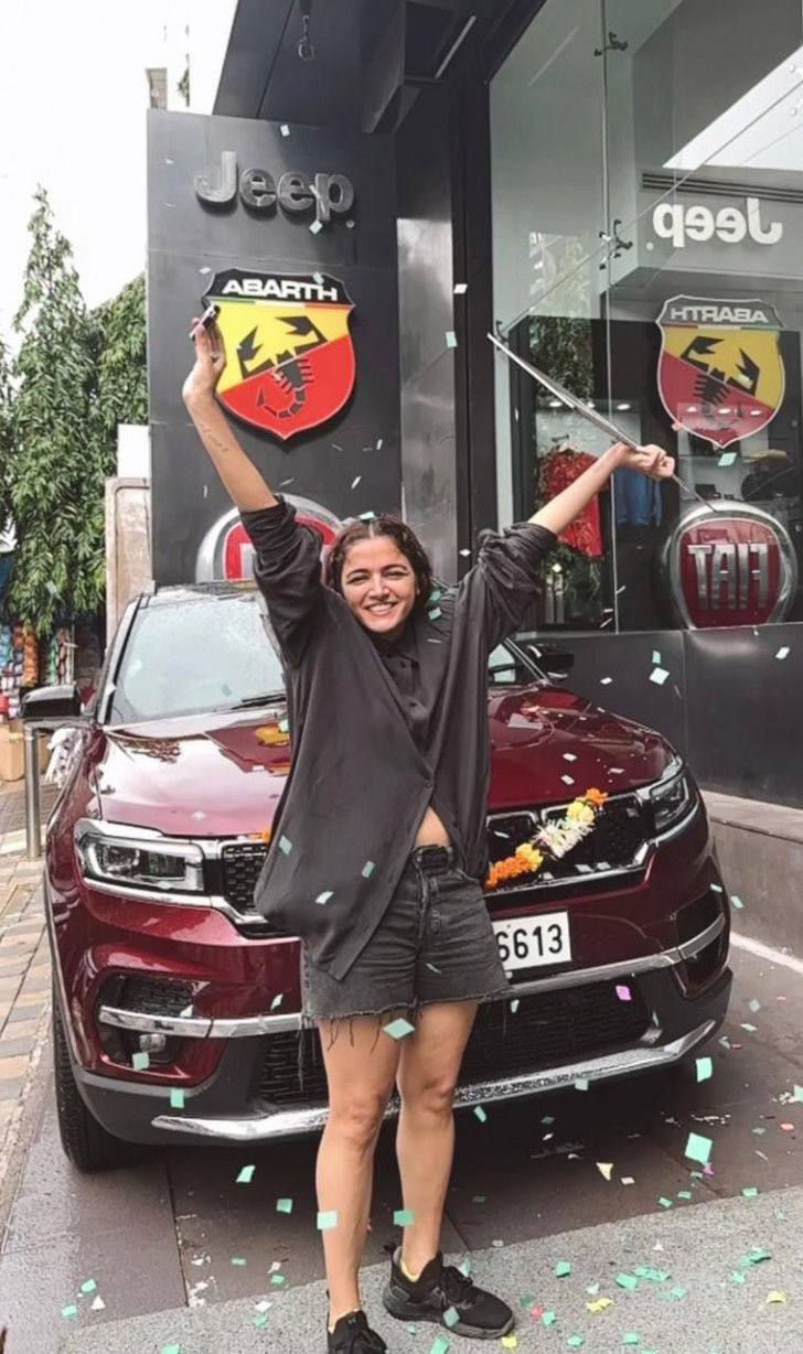The actress got herself her first car, a Jeep Meridian. The car is a seven-seater SUV with a kerb weight of 1890 kgs, is available in nine variants and is capped at a price range of Rs 38 lakh.