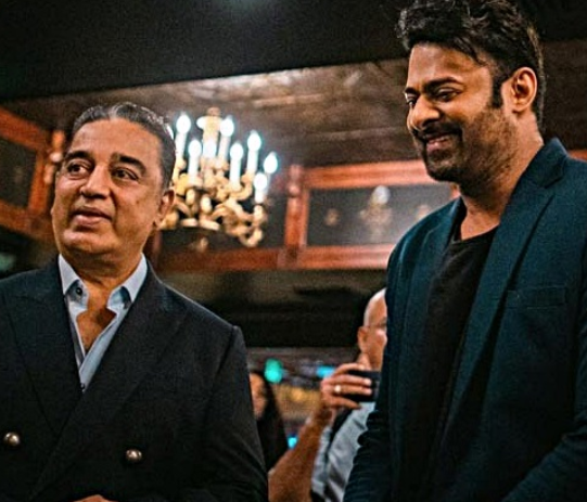 Ulaganayagan Kamal Haasan and Telugu star Prabhas, who are awaiting the release of their upcoming sci-fi epic film 'Project K', were clicked at a get together ahead of their film's grand reveal at the San Diego Comic-Con.