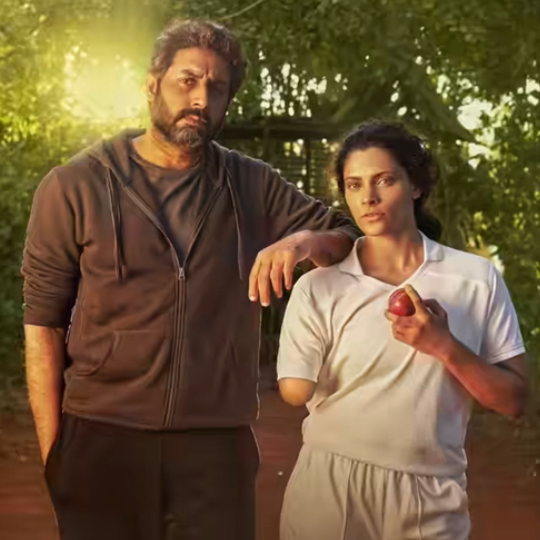 The scene then shows Abhishek resting his one hand on the shoulder of Saiyami's character, while she powerfully displays the determination of a specially-abled sportsperson.