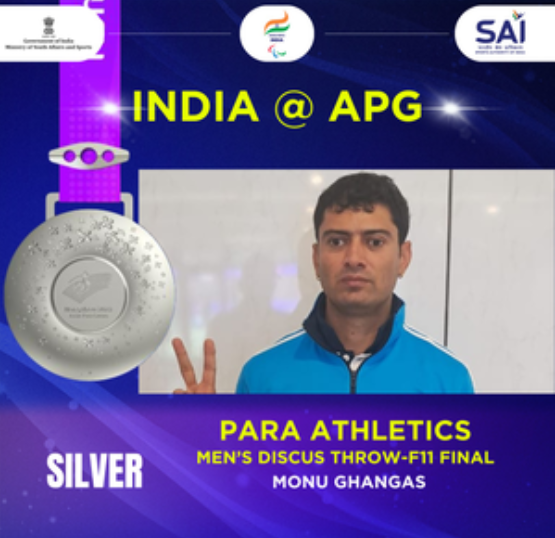India’s Monu Ghangas clinched a silver medal in the men’s discus throw F11 event at the ongoing Asian Para Games 2023, on Thursday.