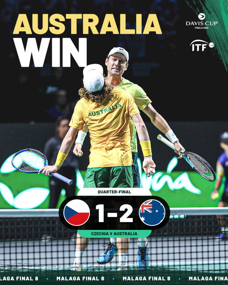Australia fought back from the brink to beat Czechia 2-1 and reach the semifinals of the Davis Cup for the second straight year.