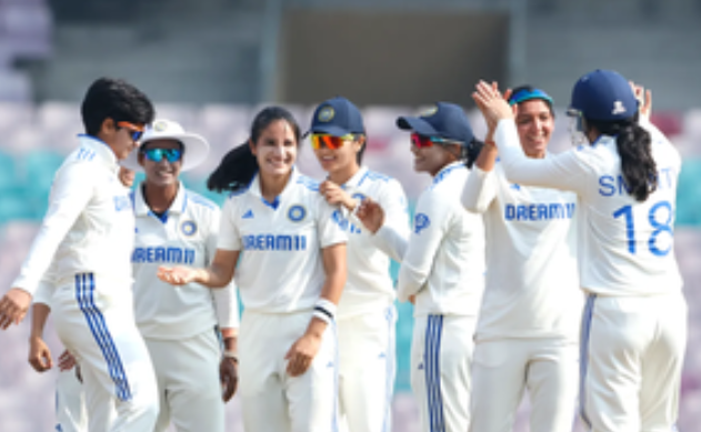 Earlier on Saturday morning, India declared their second innings on the overnight score of 186/6, setting up the stage for pacers Renuka Singh Thakur and Pooja Vastrakar to exploit the assistance offered by the pitch in the morning.