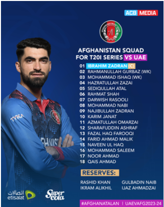 The Afghanistan Cricket Board (ACB) selection committee has unveiled an 18-member squad for the upcoming T20Is against the UAE with Ibrahim Zadran leading the side in a three-match series.