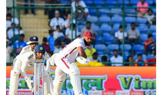 With three fielders in the off-side region, Campbell went for an expansive reverse-sweep, but was trapped lbw by a quicker delivery from Jadeja for 115. Hope continued to stand tall by punching Washington Sundar for four, before skipper Roston Chase clubbed and reverse-swept the off-spinner for six and four to bring West Indies' deficit under 50 runs. By the time Hope and Chase walked off for lunch, they ensured West Indies had another solid session in their favour.