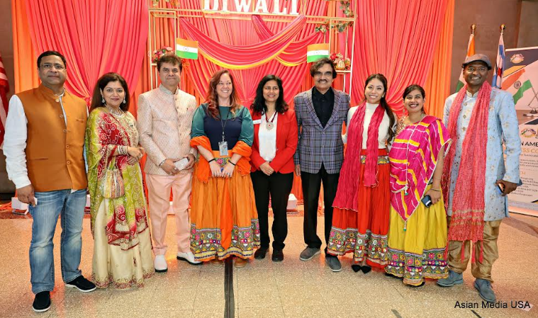 Keerthi Kumar Ravoori, Chair of the Indian American Business Council, closed by thanking the mayor for utilizing City Hall's quadrangle for this grand reception and thanked the Mayor and Consul General of India for exemplifying the spirit of Diwali.