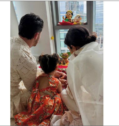 Another showed an adorable glimpse of Malti playing with the cartoon character Goofy. A photograph also showed Nick and Malti joining Priyanka as she performed pooja.