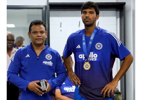 The BCCI shared a behind-the-scenes video from the dressing room with the caption He stood up to every challenge with composure and consistency. 'Dressing Room BTS', and team operations manager Rahil Khaja presented Sundar with the award.