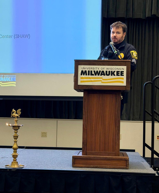 Chief of Police Brian Switala and Police Lieutenant Alexander Ewend from the UW–Milwaukee Police Department shared essential safety tips and informed students about available university and local resources to handle emergency situations effectively.