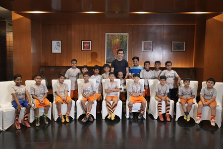 Former cricketer and current head coach of the Indian national cricket team Gautam Gambhir interacted with young football players at ITC Sonar in Kolkata ahead of Children’s Day.