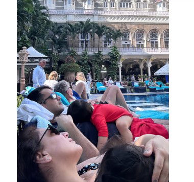 From posing for a perfect family pic to relaxing time by the poolside, to cutting the cake, their anniversary celebration seemed a wholesome family affair.