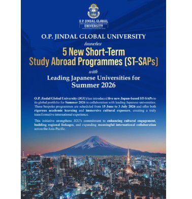 In a major boost to India-Japan academic cooperation and student mobility, O.P. Jindal Global University (JGU) on Monday announced the launch of five new Short-Term Study Abroad Programmes (ST-SAPs) across leading Japanese universities for Summer 2026. It is one of the largest Japan-focused internationalisation Initiatives by an Indian University.