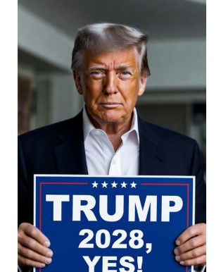 US President Donald Trump drew attention after posting an AI-generated image on his Truth Social account showing him holding a blue sign that read “TRUMP 2028, YES!” The post was captioned “TRUMPLICANS!”, a blend of “Trump” and “Republicans.”