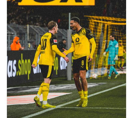 Dortmund broke the deadlock just before halftime with their sharpest move of the match. Julian Brandt found space inside the penalty area and finished from close range after a well-timed overlap down the right created the opening.