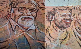 Versatile Indian actor Amitabh Bachchan's portrait features prominently among a host of luminaries on the world's largest-ever canvas painting, which is bidding to get into the Guinness book of records....