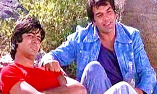 Veteran star Dharmendra has shared a throwback image from the iconic 1975 film 'Sholay' and wished the "most talented" star Amitabh Bachchan for his next movie 'Uunchai'....