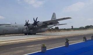 An Indian Air Force transport aircraft Hercules C-130J carrying two Union Ministers -- Rajnath Singh and Nitin Gadkari -- landed at newly constructed 3.5 kilometres long emergency landing strip at National Highway, just 40 kilometres from the international border....