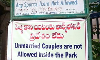 The municipal authorities in Hyderabad on Thursday removed a banner from a park after alleged moral policing sparked an outrage over social media....