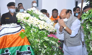 Union Defence Minister Rajnath Singh arrived in Lucknow on Sunday and offered tributes to late Kalyan Singh at the latter's residence....