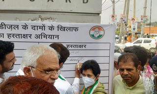 Haryana Congress president Kumari Selja on Thursday launched a signature campaign at a petrol pump here to protest against the fuel price rise....