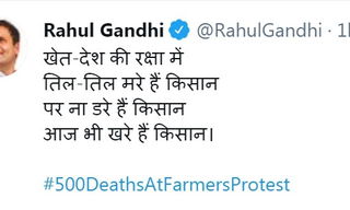 Former Congress President Rahul Gandhi on Wednesday took a potshot at the government saying the farmers have been protesting against the three farm laws despite several deaths at the protest site....