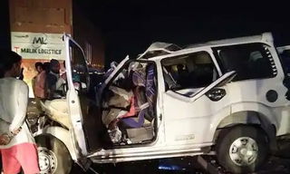 Nine persons were killed and three seriously injured when a Scorpio vehicle rammed into a container on Thursday morning in the Etmadpur area here. ...