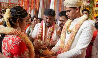 Coinciding with Valentine's Day, Karnataka Pradesh Congress Committee (KPCC) president D.K. Shivakumar's eldest daughter Aishwarya on Sunday married BJP's veteran member S.M. Krishna's grandson Amartya Hegde at a private hotel in this tech city....
