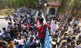 There was tension at the University of Hyderabad campus on Friday as the police detained a group of students for protesting against the alleged encroachment on university land for building a road. Alleging that the construction of a road for the Telangana Non-gazetted Officers...
