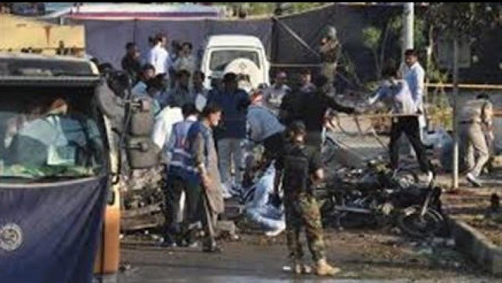 The area was crowded as people were making their way to vote at Tameer-e-Nau Model School. Polling has come to a halt at the polling station after the blast.