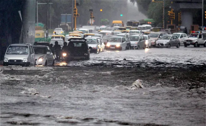 New Delhi, July 26: Heavy rains lashed Delhi and the National Capital Region on Thursday morning bringing respite from the humid conditions and bringing down the mercury.