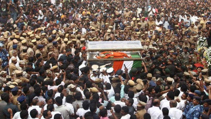 Stalin has appealed to people to keep calm during the final journey. Shortly afterwards, two persons were killed in a stampede outside Rajaji Hall.