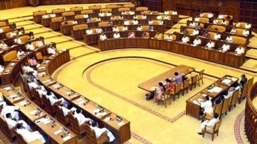 This led to sloganeering by the opposition members who stood near the Speaker's podium, forcing Sreeramakrishnan to rush through the day's business.