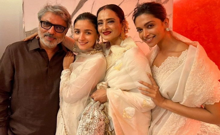 Mumbai, March 2 : An unseen picture from the premiere of the Sanjay Leela Bhansali directorial 'Gangubai Kathiawadi' recently made its way to the Internet and has gone viral since then. The picture in question has the director posing with actresses Alia Bhatt, Rekha and Deepika Padukone.