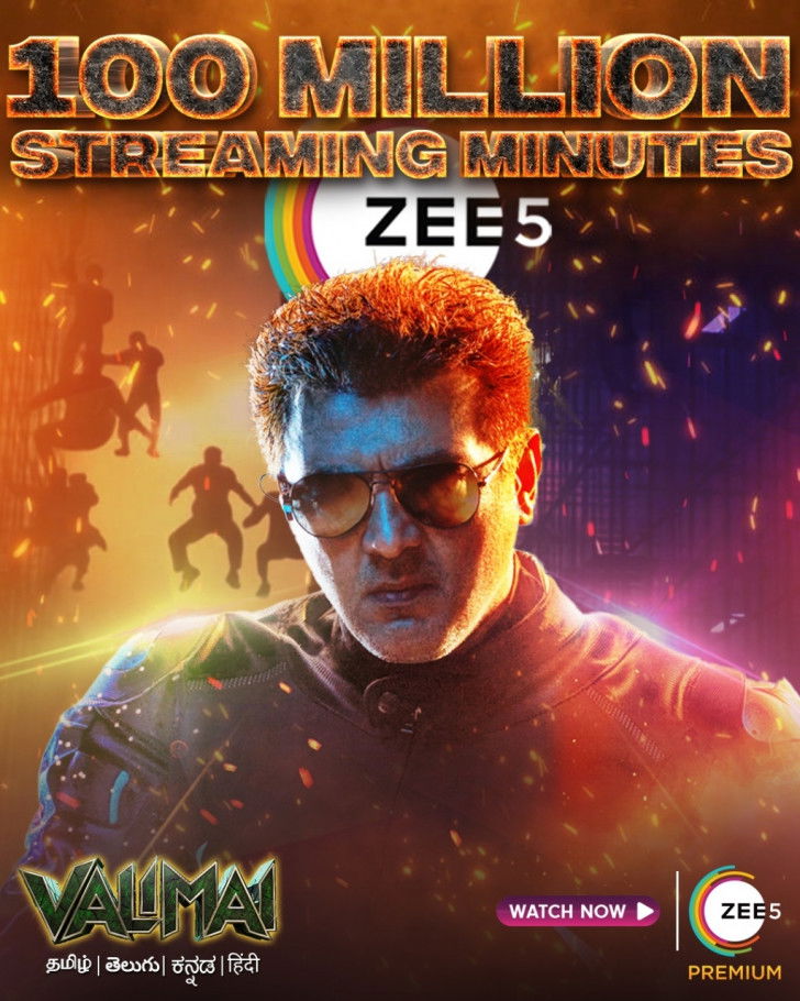 Director H. Vinoth's 'Valimai', which was released on ZEE5 recently after having a good run in theatres, has managed to take an impressive opening on the OTT platform as well, garnering a 100 million streaming minutes.