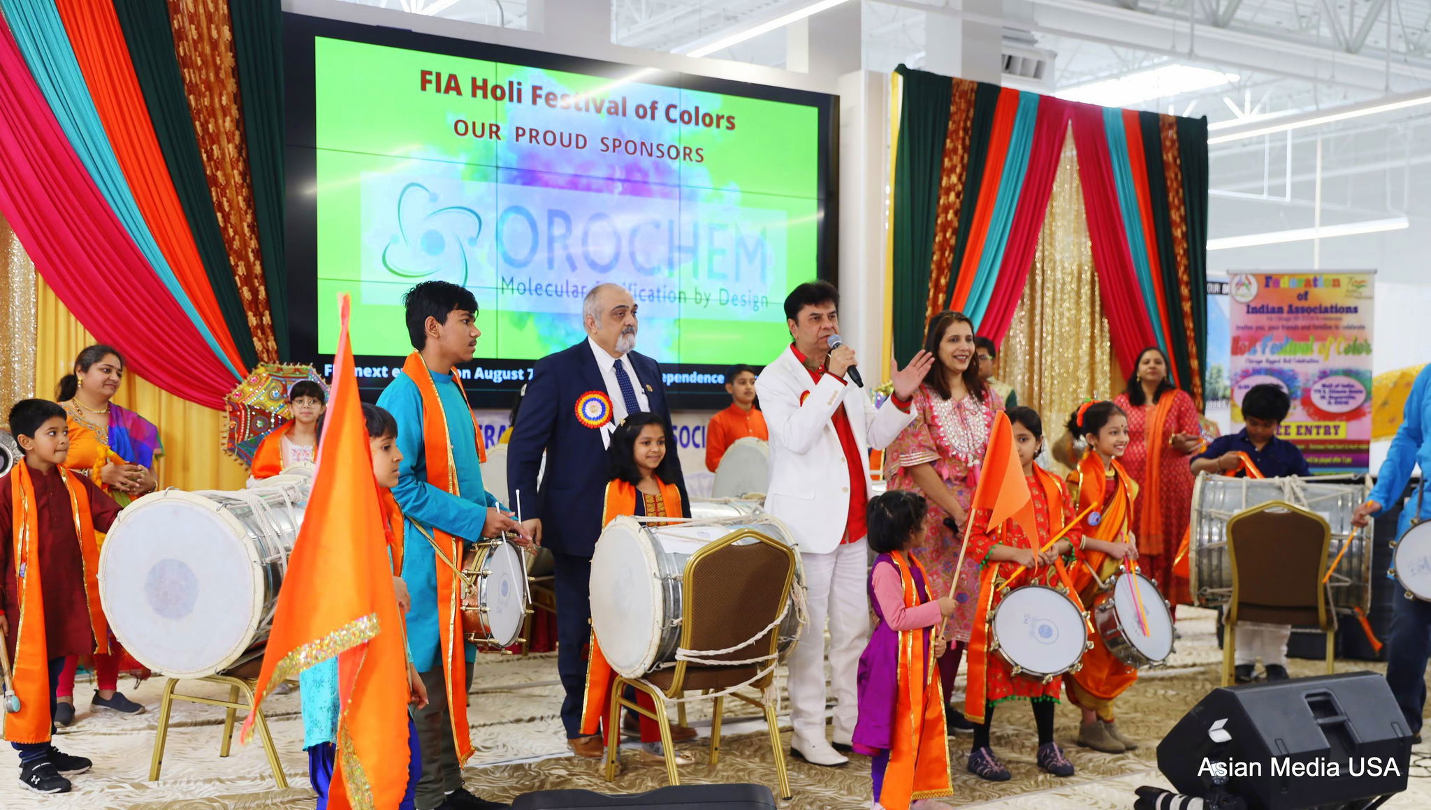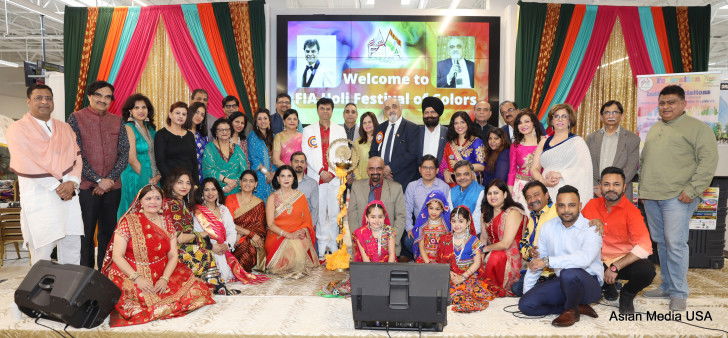Chicago IL: Federation of Indian Associations [FIA] Chicago, status 501(c)(3), a premier community umbrella organization -- hosted a spectacular, vibrant and colorful Holi celebrations marked by festive gaiety interspersed with beautifully decorated stage & premises, filled with music, dance and singing that was awash with the vibrancy of colors and gallant exuberance at the Mall of India in Naperville, Illinois on Sunday Apr 03, 2022.