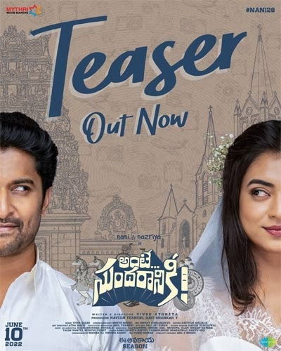 The teaser for 'Ante Sundaraniki,' starring Nani and Nazriya Nazim, was released on Wednesday.