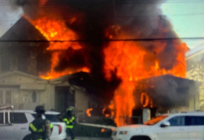 The incident was classified by officials as a "five-alarm fire" which spread to four other houses fanned by strong wind gusts, WPIX reported.