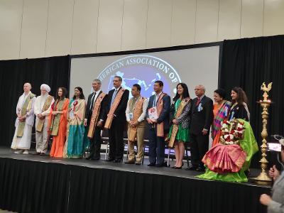 Commemorating India’s 75 years of India’s Independence, AAPI delegates had a rare glimpse to the rich cultural heritage of India through a video presentation depicting the unique diversity of India and a variety of mesmerizing performances of Indian/Mexican Fusion Dances, ranging from Bharatnatyam, Rajasthani folk dances, and the traditional Indian dances in sync with Mexican pop dances, which were a treat to the hearts and souls of everyone. National Spelling Bee Champion 2022 Harini Logan was recognized during the convention Gala.