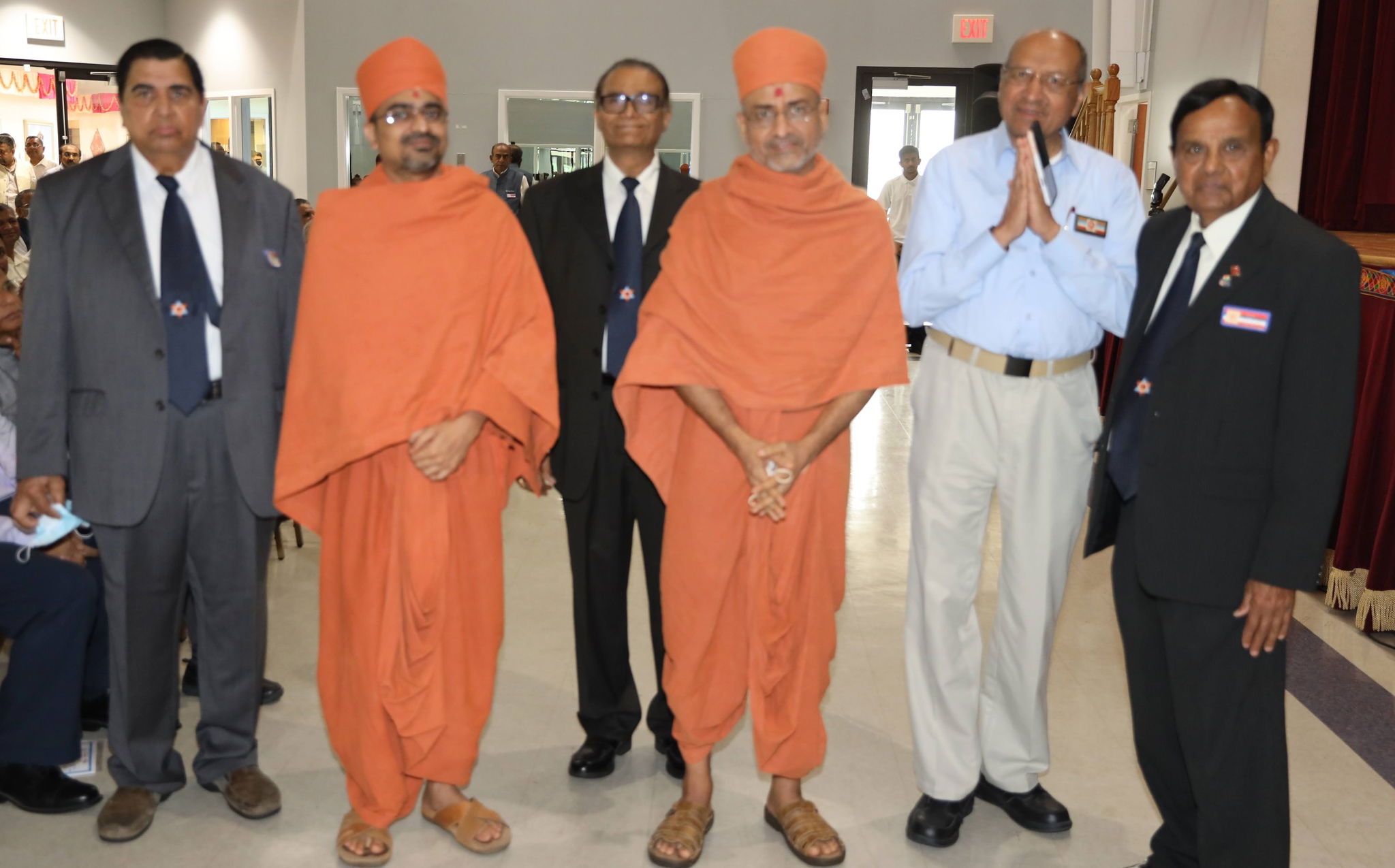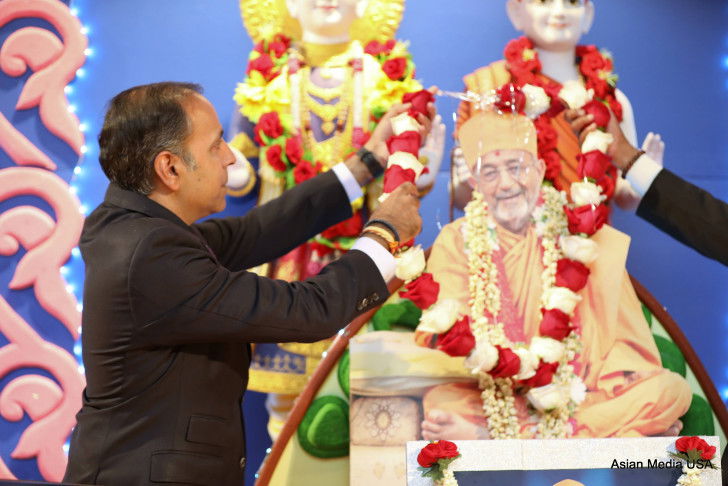 After the presentation, Hon. Jayeshbhai introduced the guest dignitaries present followed by P.P Hariprasadswamiji and P.P. Premaswamiji's idol was honored with flower garlands and bunches of flowers by the invited dignitaries, the guests included Congressman Mr. Raja Krishna Murthy - representing the 8th District of Illinois since 2017, Deputy Consulate General Officer Mr. Vinod Gautam, Vice Consulate General Officer Mr. Bhutia, Entrepreneur Mr. Mafatbhai Patel of Patel Brothers, Mayor of Lincolnwood Mr. Jasal Patel, CEO of Millennium Bank Mr. Moti Aggarwal, VHPA President - Harendra Mangrola, Regional Director of Vishwa Umiya Foundation and President of Umiya Mataji Mandir West Chicago Mr. J.P. Patel, Chairman of Sri Jalaram Temple Mr. Chirayu Parikh, Chairman of Trustees of Jain Metropolitan Society Mr. Chicago Mr. Tejash Shah, President of Jain Metropolitan Society of Chicago Mr. Piyush Gandhi, Representative of Sri Swaminarayan Mandir Wheeling – Vadtal Dham Mr. Kirit Patel, Mr. Hemant Bhrambhat, Publisher of Hi-India, Mr. Jatinder Bedi, Founder and Publisher of Hello-NRI, and Mr. Suresh Bodiwala, Publisher of Asian Media USA, Mr. Babubhai Patel, President of NFIA, Mr. Suryakant Patel – Gujarat Samaj, Founder and Ex-President of AASARP, Mr. Pradeep Shukla, Secretary of Overseas Friends of BJP Mr. Amar Upadhyay, President FIA Chicago Mr. Rakesh Malhotra, Former President FIA Chicago Mr. Rajesh Patel, Acting President Mr. Hemant Patel, President of 42 Village Patidar Samaj Mr. Dashrath Patel, United Senior Family President Mr. Rameshbhai Patel, Chicago Hindu Mahotsav Group President Mr. Shailesh Rajput.