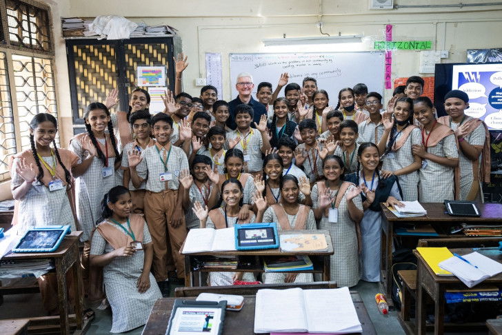 Returning to India after seven years to launch Apple's first own-branded retail store here, Cook paid a visit to Sitaram Mill Compound municipal school in Lower Parel area in Mumbai where Apple has integrated iPads and Apple TVs into the classrooms.