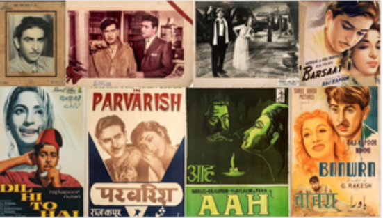 These items are collected or related to Raj Kapoor and also ‘RK Films’ presentations like 'Dil Ki Rani' (1947), 'Aag' (1948), 'Barsaat' and 'Andaaz' (1949), 'Awara' (1952), 'Aah' ((1953), 'Shree 420' (1955), 'Anari' (1959), 'Jis Desh Mein Ganga Behti Hai' (1960), 'Dil Hi To Hai' (1963).