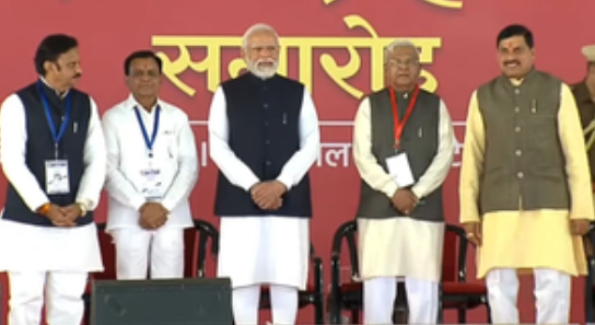 The swearing-in was conducted by Madhya Pradesh's Governor Mangubhai Patel in the presence of Prime Minister Narendra Modi, Union Minister Amit Shah, BJP's national head J. P. Nadda and the Chief Ministers of several states ruled by the saffron party.