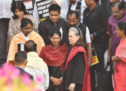 Sonia joins suspended MPs protest in Parliament