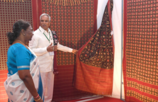 President Murmu, who is staying at Rashtrapati Nilayam in Hyderabad as part of annual southern sojourn, reached Pochampally by a helicopter.
