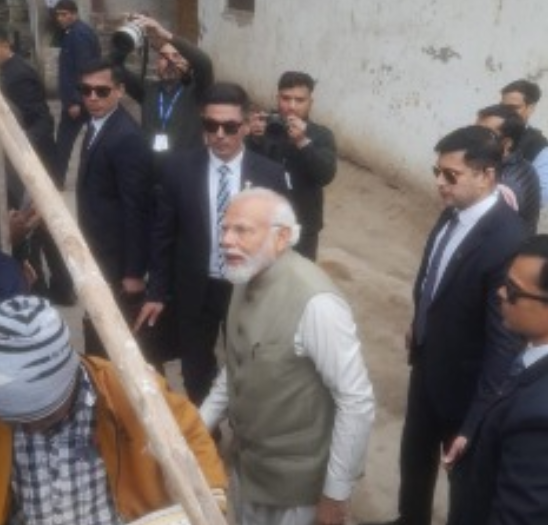 Prime Minister Narendra Modi, on his way from Ayodhya Dham railway station to the Maharishi Valmiki airport, made a brief stopover at the house of Dhaniram Manjhi, a Dalit and a beneficiary of a house under the PM Awas Yojana.