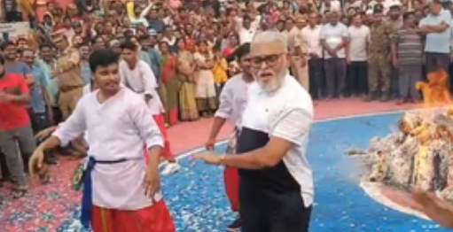 He led a group of tribal women and also a group of youngsters to dance to some popular Tollywood numbers.