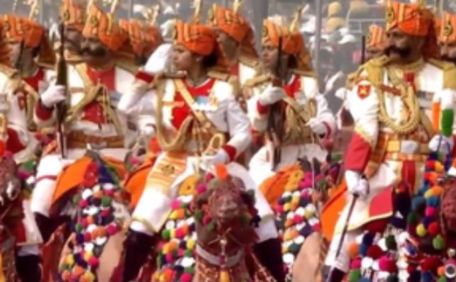 Female camel riders -- on decorated camels -- from Camel Contingent of Border Security Force took part in the Republic Day parade on Friday.