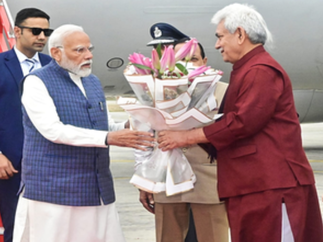 J&K Lt Governor Manoj Sinha, Chief Secretary Atal Dulloo, DGP R.R. Swain and other senior officers received the Prime Minister at the airport.