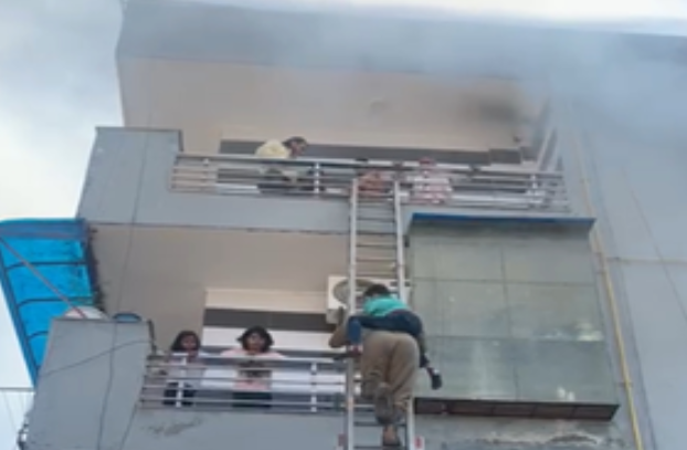 A man and a child were rescued after a fire broke out in a house in west Delhi’s Mohan Garden area on Friday, a fire department officer said.